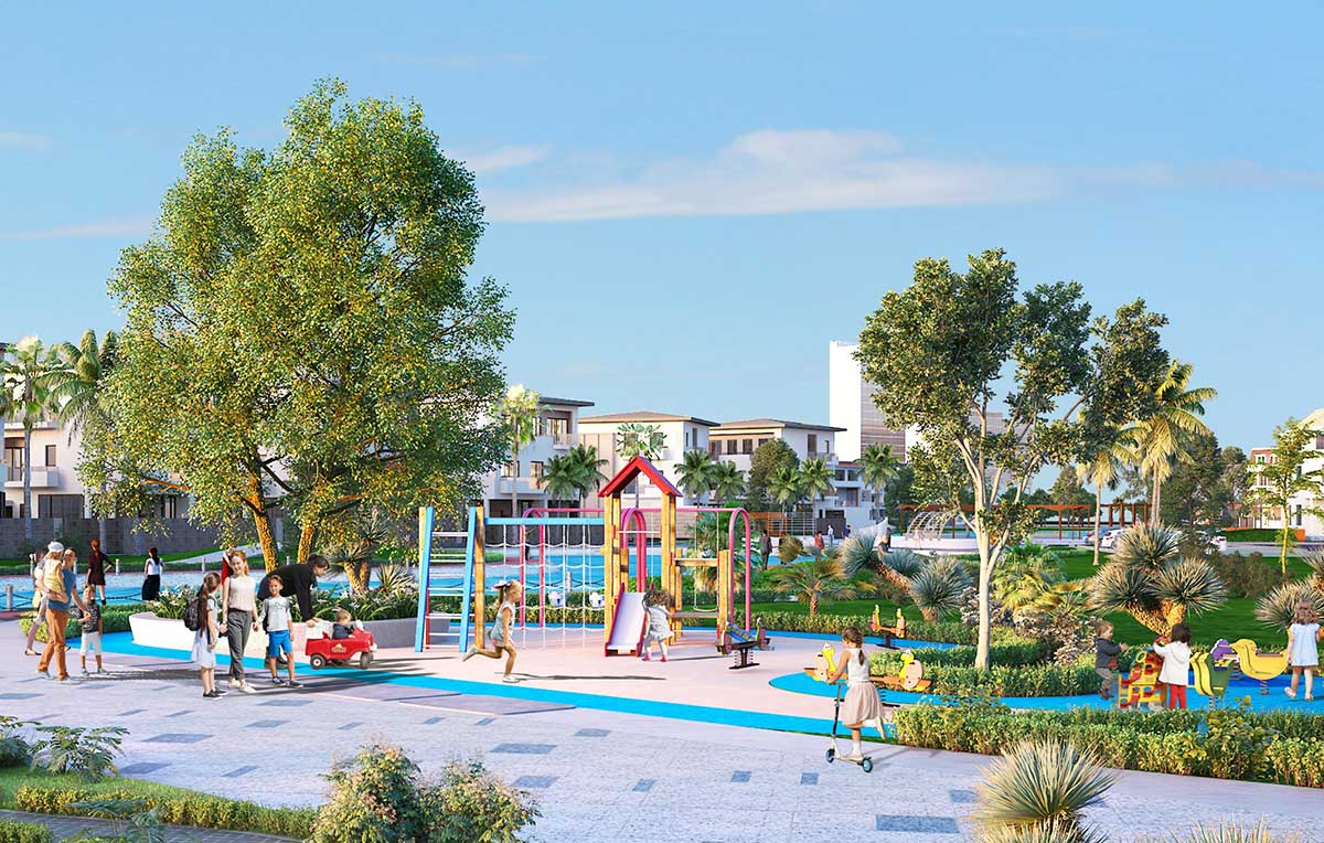 Mật độ xây dựng: chỉ khoảng 36%, phần lớn diện tích dành cho mảng xanh, công viên, 9ha mặt nước cảnh quan